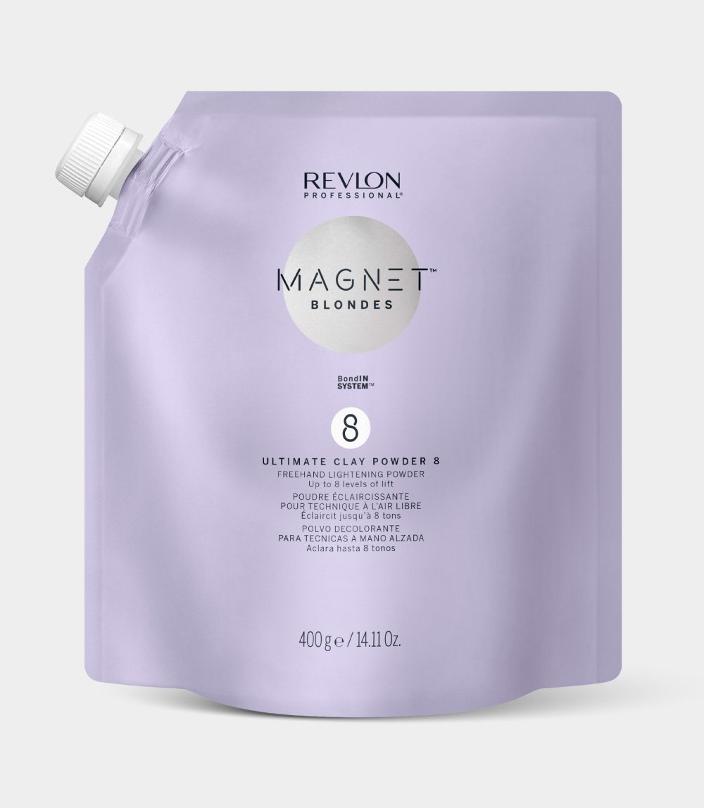 El Magnet Blondes Ultimate Clay Powder 8 de Revlon Professional es un polvo decolorante de alto rendimiento diseñado especialmente para técnicas de aclarado a mano alzada. Su textura tipo arcilla permite una aplicación precisa y controlada, ideal para técnicas como balayage, freehand y efectos de iluminación natural.